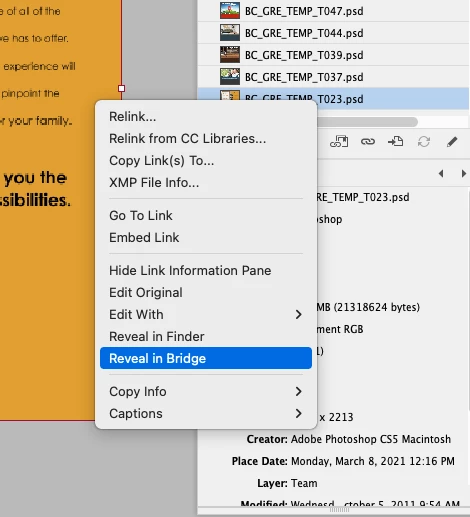 How I fixed was go to InDesign find a linked graphic and right click and choose reveal in Bridge, forces Bridge to open on a folder other than computer might have to do it a few times