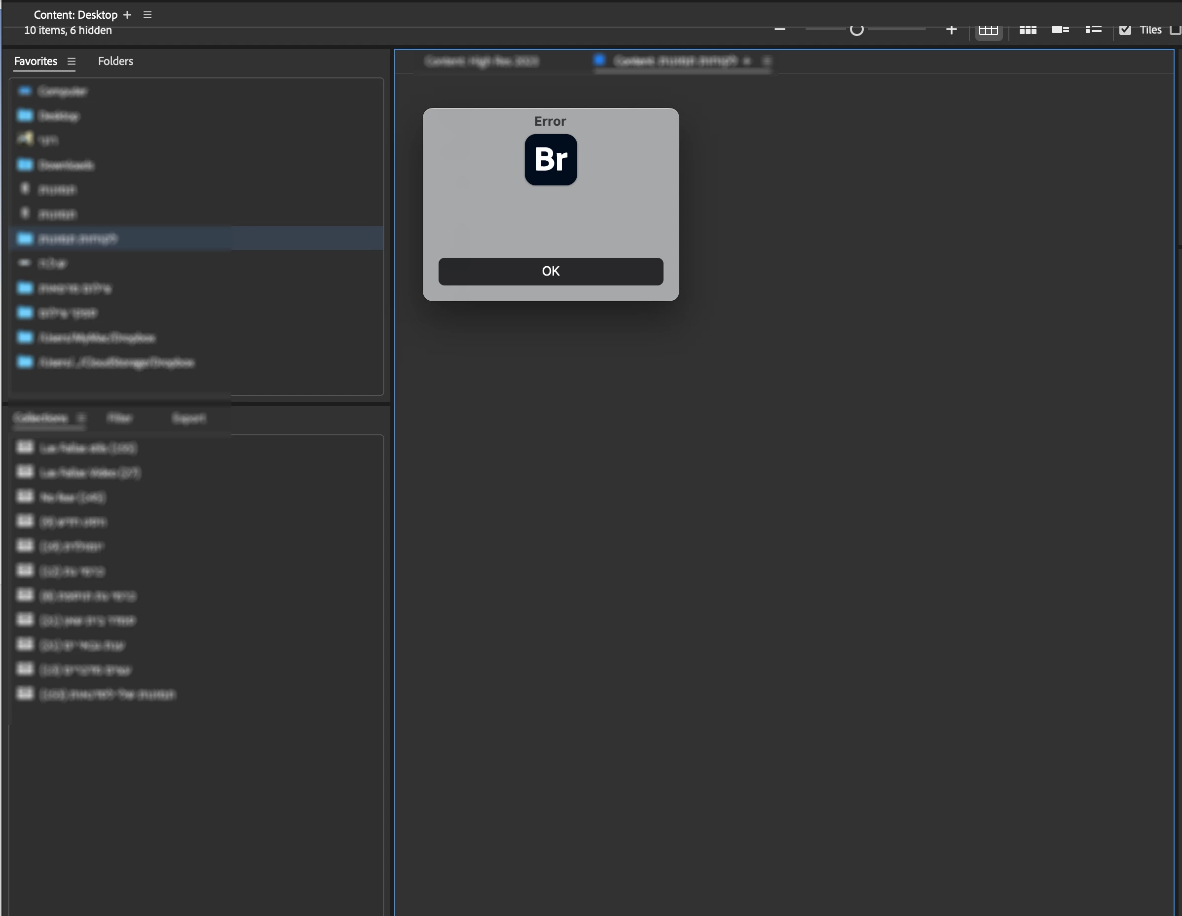 So, Bridge 2024 updaed today to v14.1.1 and it's now giving me the blank error message and crashing.  Using a 2017 27" iMac runnin g Ventura 13.5.  I've set the Files and Folders preference and granted persmission for access to all folders, and set All Disc Access for Bridge to on, but it keeps reverting to off.  Restarted the computer a couple of time and nothing changes.  Pretty P.O.'d that an update would shut me down.  Anyone with any other suggestions?  Thanks...   Dave