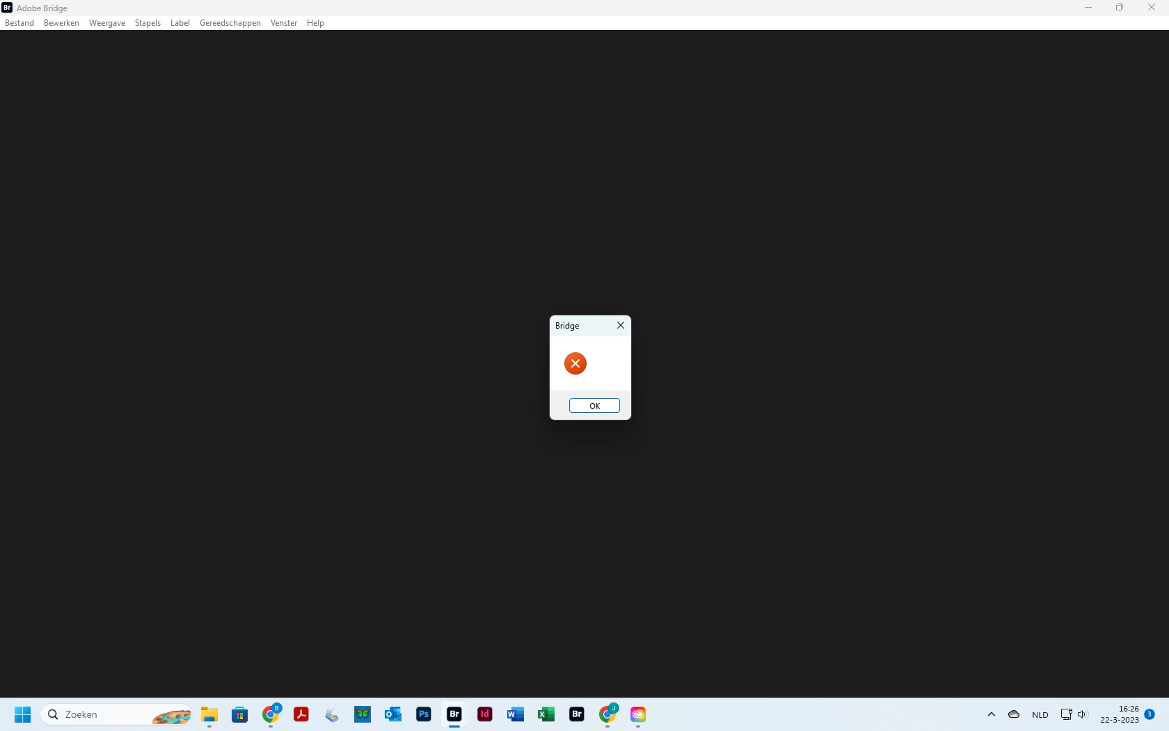 Bridge 13.0.2 opens as below. When OK is pressed bridge closes.