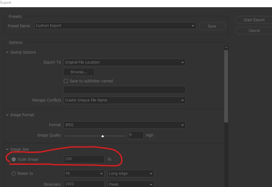 I have have a folder of HEIC images I want to convert to JPG. In Bridge I select the image(s) and "export to", then select JPG and set scale to 100%.  The original HEIC image is 3024 x 4032. The resulting jpg image is 240 x 320.  What is causing this? I'm probably missing something basic here.