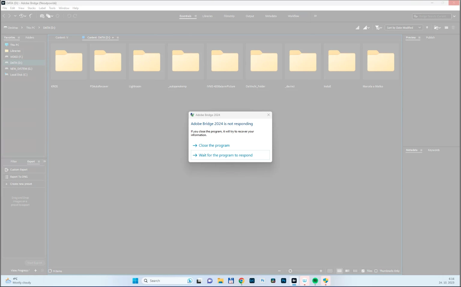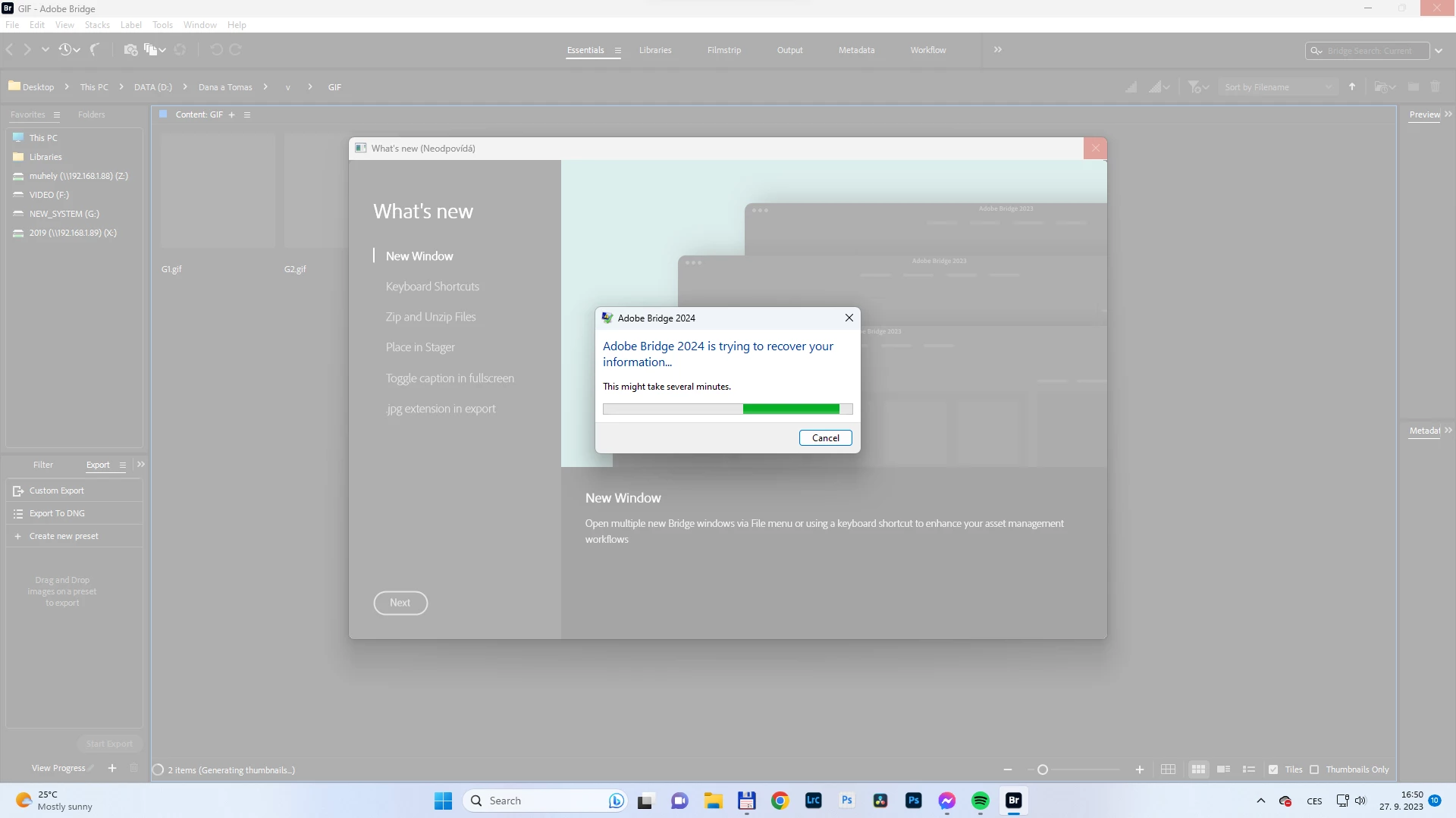 I believe the issue may be related to mapped network drives that are not connected. However, the new bridge (with floating windows) is unusable for me. It sometimes takes 3-4 restarts to get it to work, and I have to wait for about a minute or more before I can interact with the program because it freezes. (The network drives in my favorites are always connected, and they are treated as local drives.)