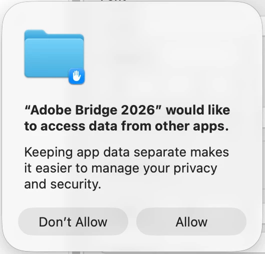 Regardless of the option chosen, the message of the image below keeps appearing every time I open Adobe Bridge 2026.
