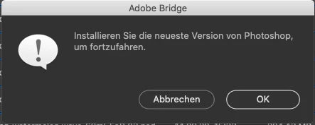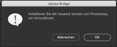 Now I'm not able to use the batch processing out of bridge anymore. I get a message which tells me to "install the newest Photoshop version". However this is what I already did. Creative Cloud tells me Photoshop version is up-to-date.