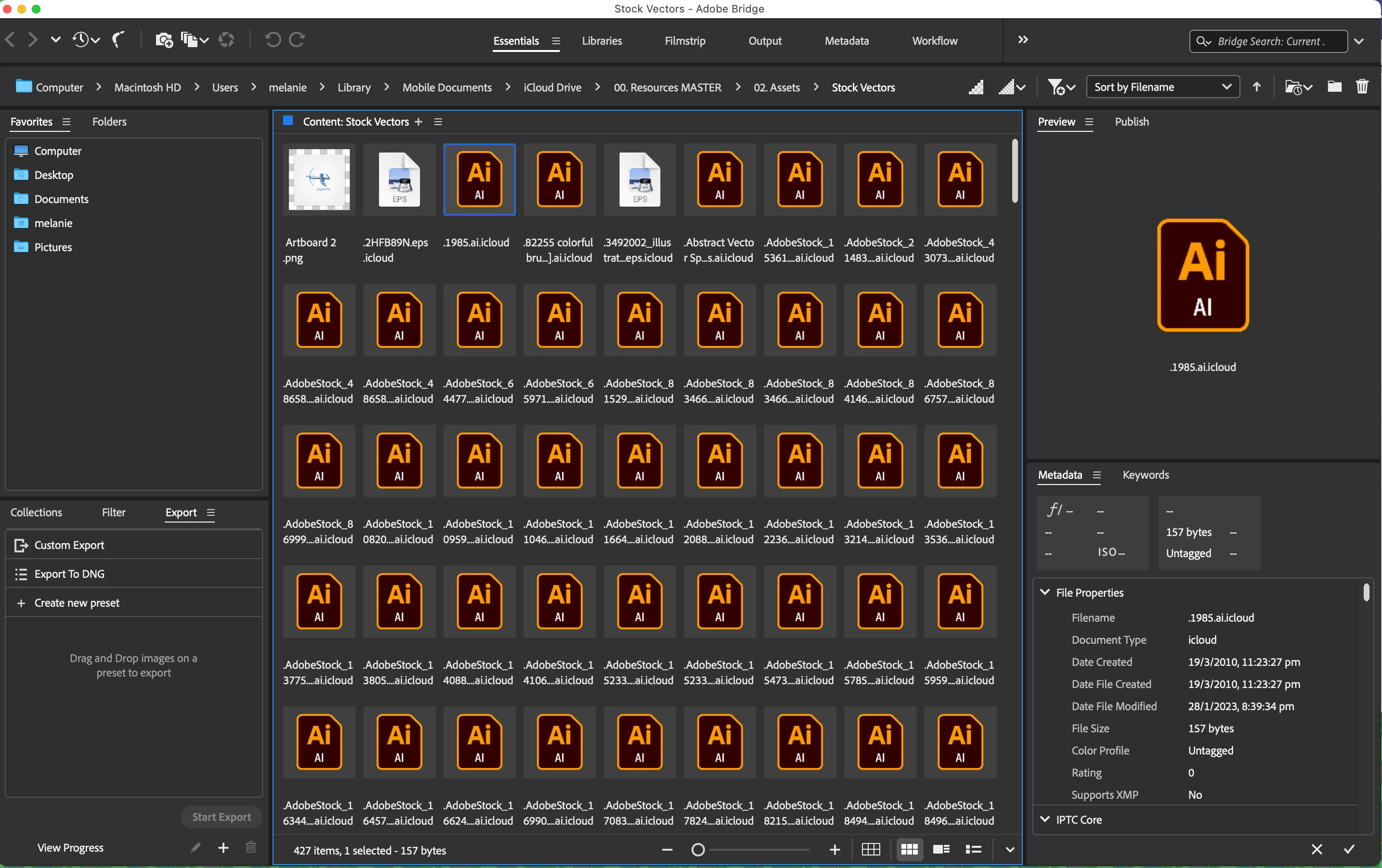 NNine Tail FoxParticipantForum|Forum|2 years agoDecember 7, 2023QuestionBridge not previewing AI filesForum|Forum|2 years agoDecember 7, 20231 reply224 viewsI'm running Creative Cloud on Monteray (12.7.1) on Mac. The latest version of Bridge is not previewing Vector files, just showing the AI icon.I have checked my Security and Privacy permissions and reset the Bridge preferences.Any other suggestions?BugProblem or error