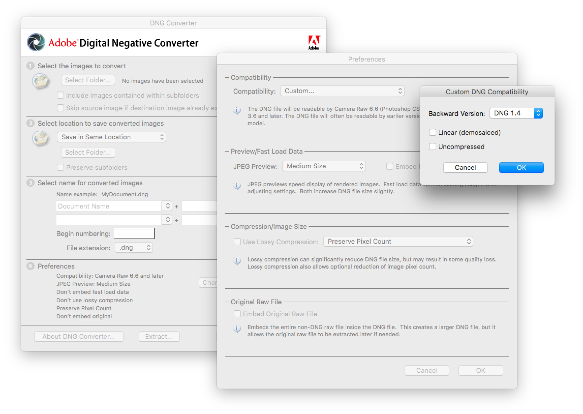- import my files from my camera into Bridge, CONVERTING THEM TO DNG