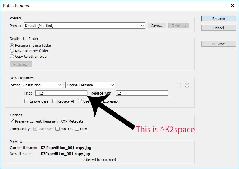 I have a folder of images from a travel trip that I naively processed before renaming. I saved images as PSD and JPG along with maintaining the CR. This gave me an original file number with say 2 different extensions under the same number. But later, I found other images from the same trip that I want to add in a specific order to the folder. But when I attempt the Batch rename it will change each image with consecutive file number, if I have saved them with different extensions. Is there a way to Batch rename all the collection of images where an image with say 2 or 3 different extensions can keep the same new Batch rename and number? ie: