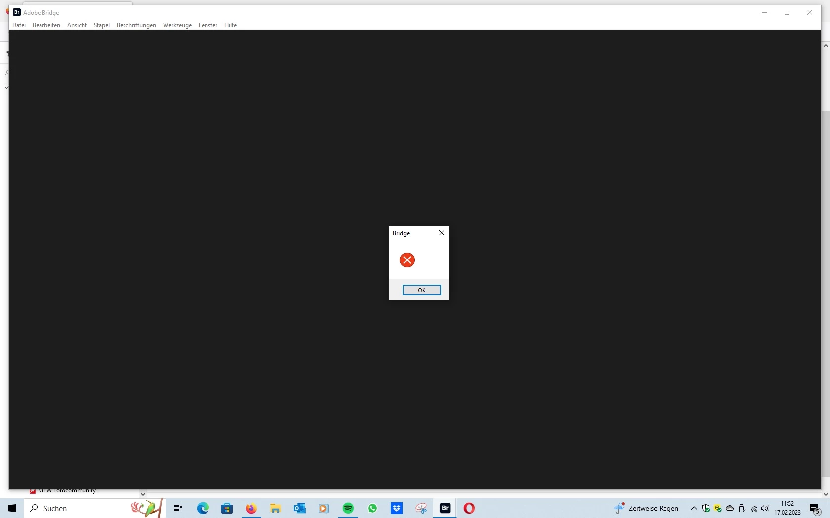 Seit ein paar Tagen startet Bridge nicht mehr und gibt nur diese leere Fehlermeldung.