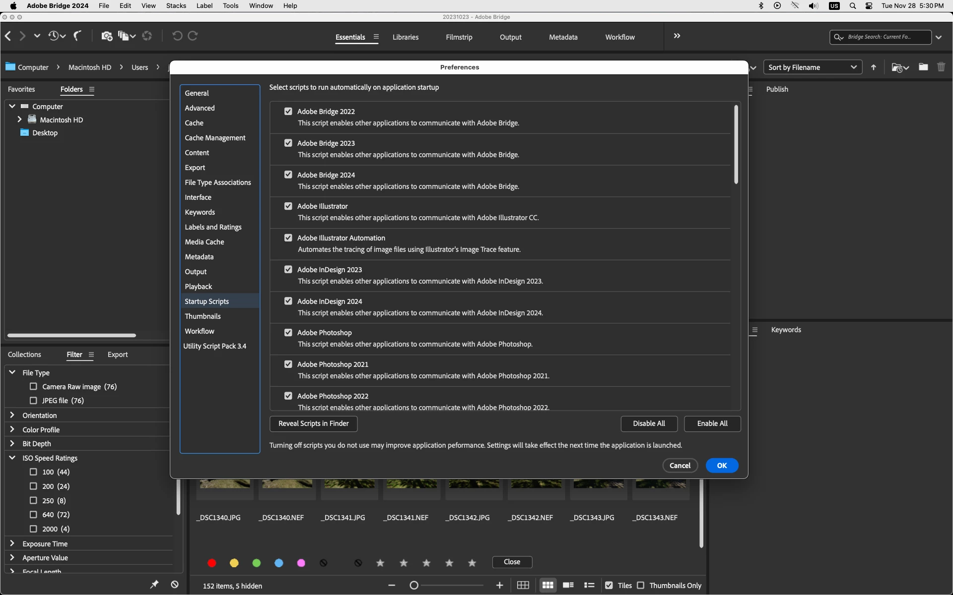 When in Adobe Bridge 2024 preferences, under Startup Scripts, all the major softwares show as, for example, "Adobe InDesign 2024" and "Adobe Photoshop 2024".