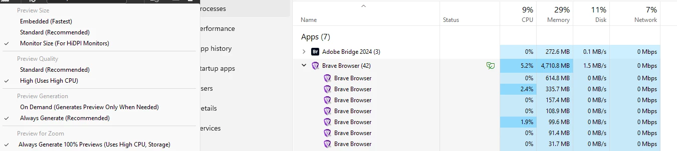 Bridge Video Previews - Using 0% CPU, No Previews Shown