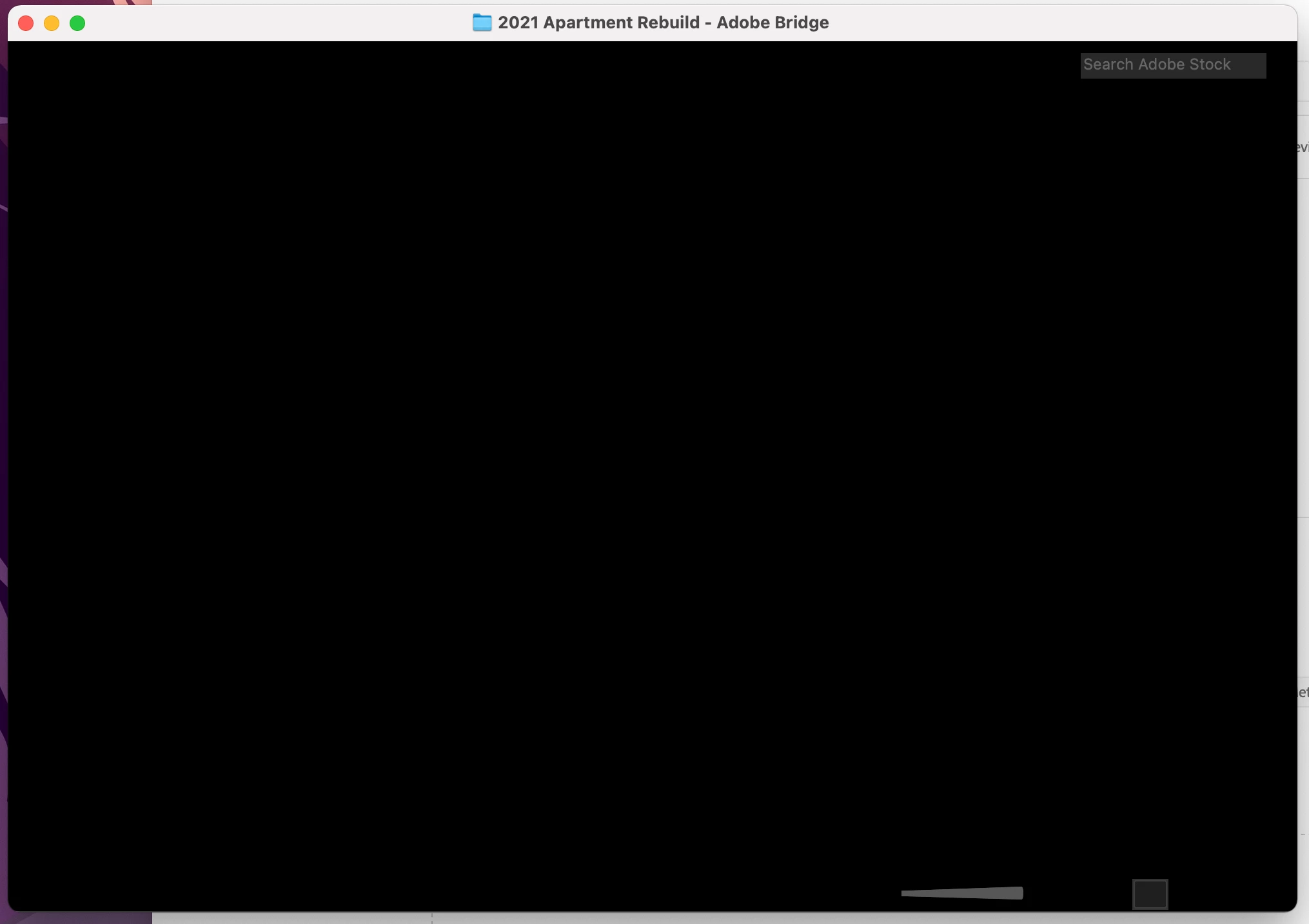What has caused my Bridge window, regardless of workspace, to appear essentially black (see screenshot)? And why does the name of a recently viewed folder appear in the title bar of this useless window? Is there something I need to reset? Reinstall Bridge? Thanks for a wise answer.