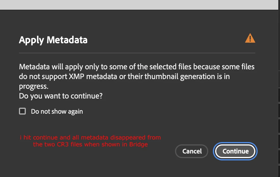 For the files that do open in Bridge, sometimes adding metadata works and sometimes I type in metadata or click one in my master list and get--
