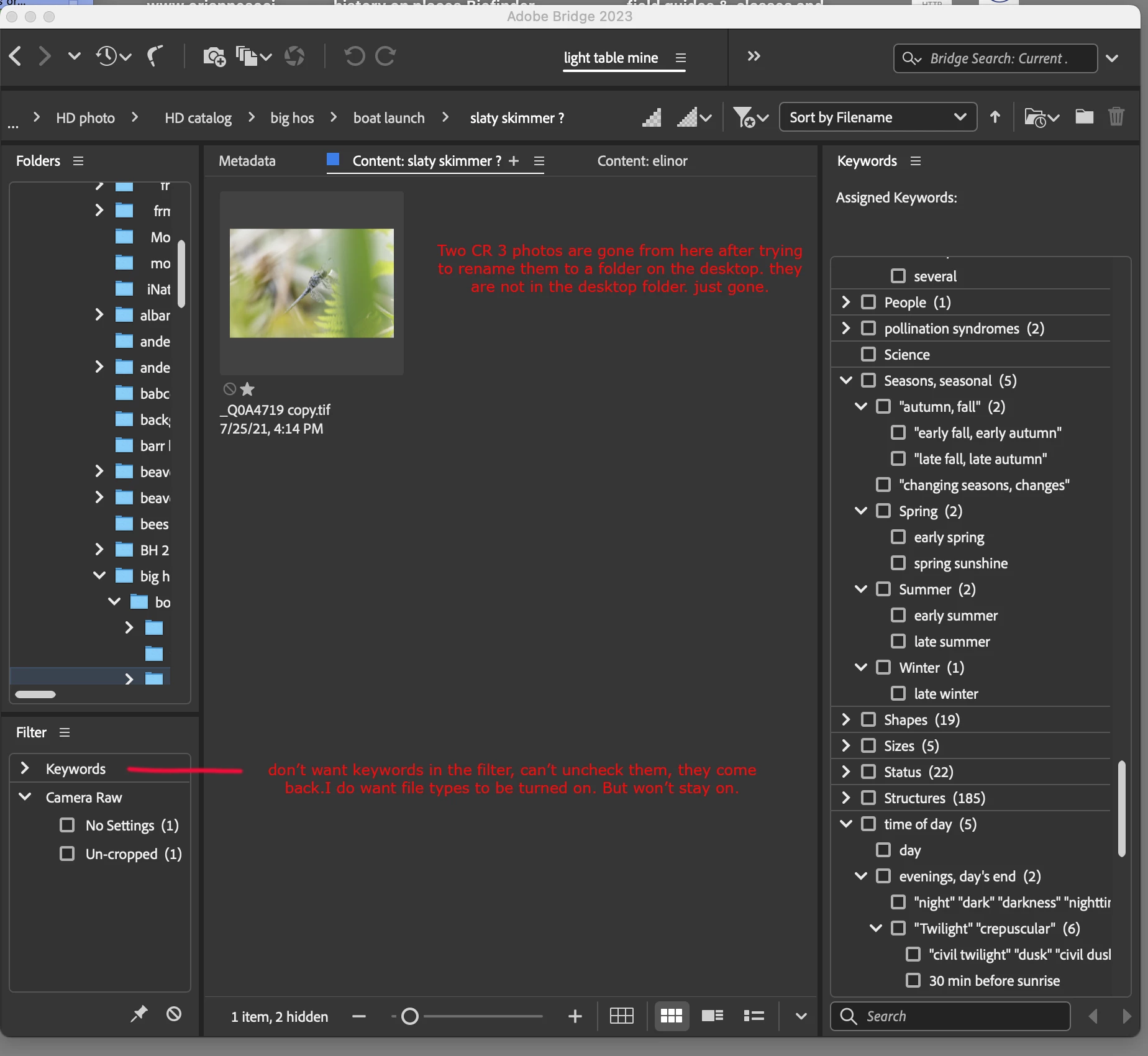 Bridge won open some RAW files. not keeping metadata. won't rename files. filter list not work. etc.