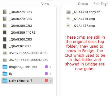 RAW files are also gone from the Finder desktop folder. xmp are still there. Also Bridge will no longer rename in the same folder. I get SEQN instead of the seqence number. I called about this three times about 7 years ago. Still not fixed so I have to ssend the rename to another folder.