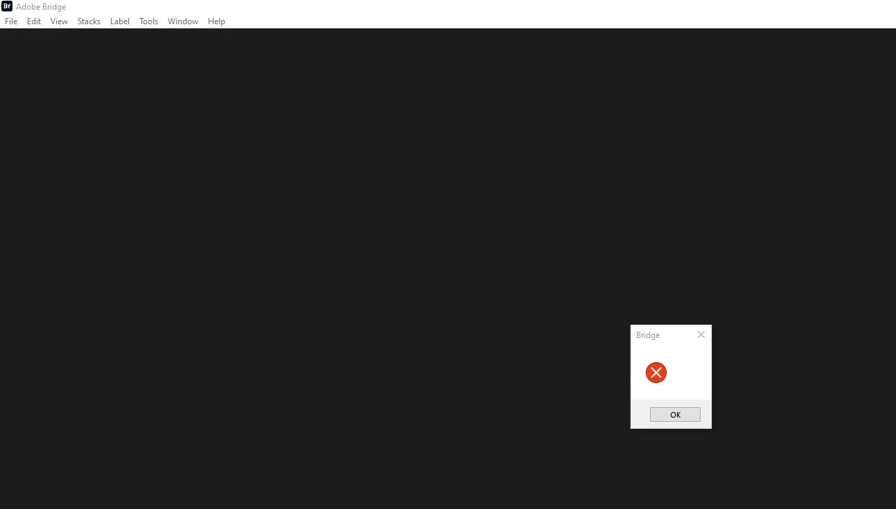 Recently, past week or so, Bridge will not open. It launches and then immediately a small box appears in the middle of the screen.