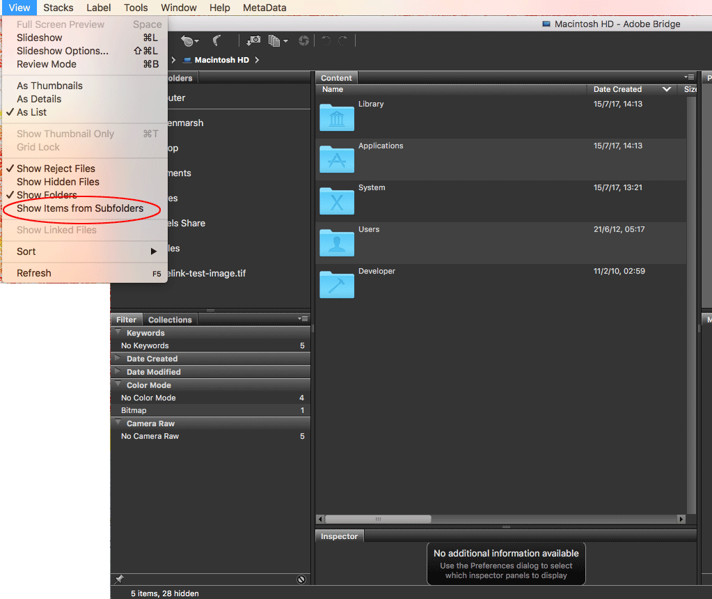 The catch is that if I open a subfolder within Bridge, Bridge will then recognize the keywords within that subfolder. So we know Bridge has picked up our keywords but it doesn't seem to search all subfolders unless each folder has been opened. It is impractical to open hundreds of subfolders on multiple computers.