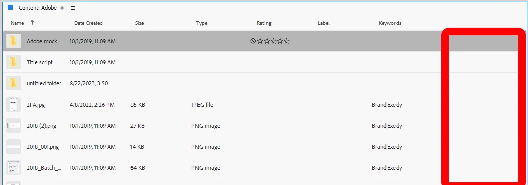 In Bridge 12, clicking to the right of the property columns will select an item. In Bridge 15 beta, clicking to the right of the columns will not select that item.