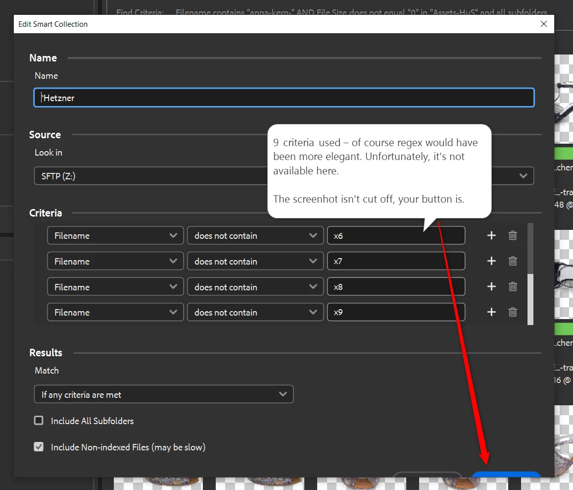 - Bridge cannot handle lots of filter-conditions in Smart Collections