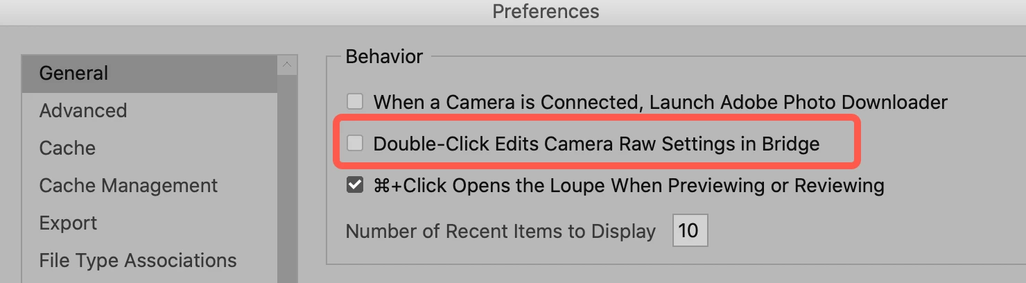 Now, there's one other issue going on here and that's which application is opening the ACR plugin because you can have the ACR plugin open from either Bridge or PS. If you open Bridge's preferences, you'll see this: