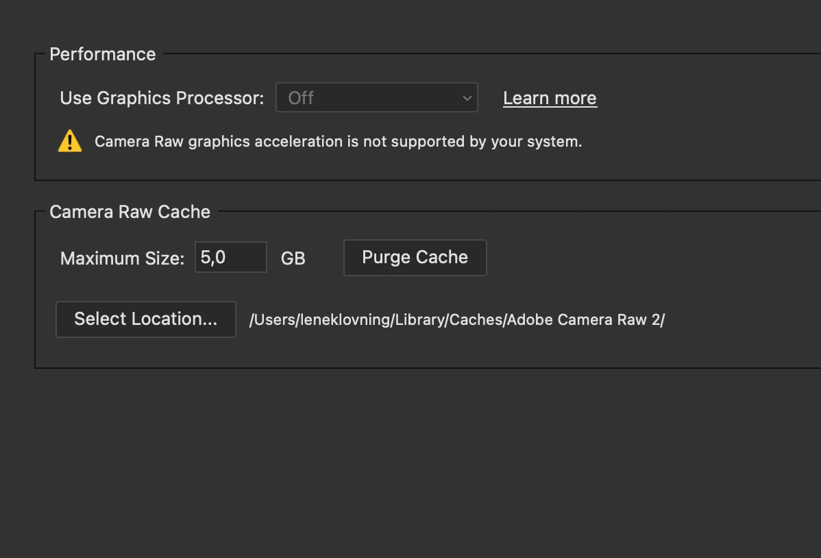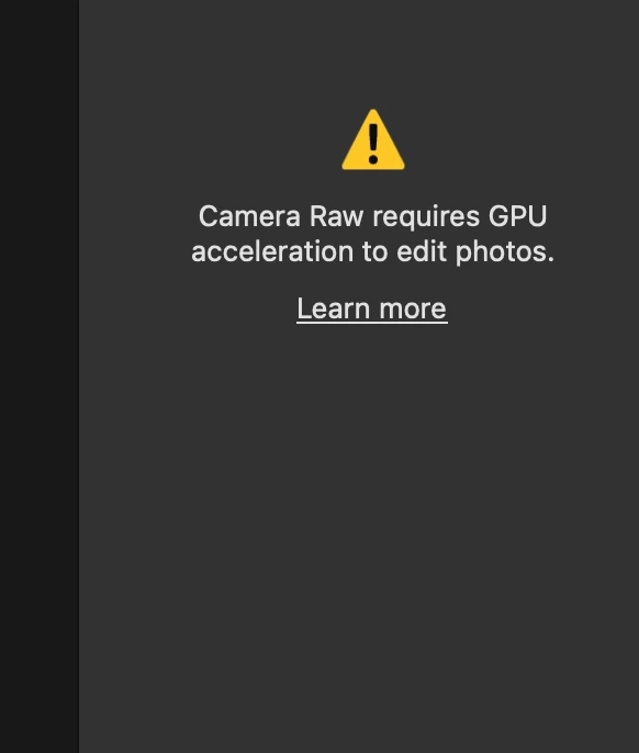 Camera raw requires GPU acceleration to edit photos Macbook M3 pro