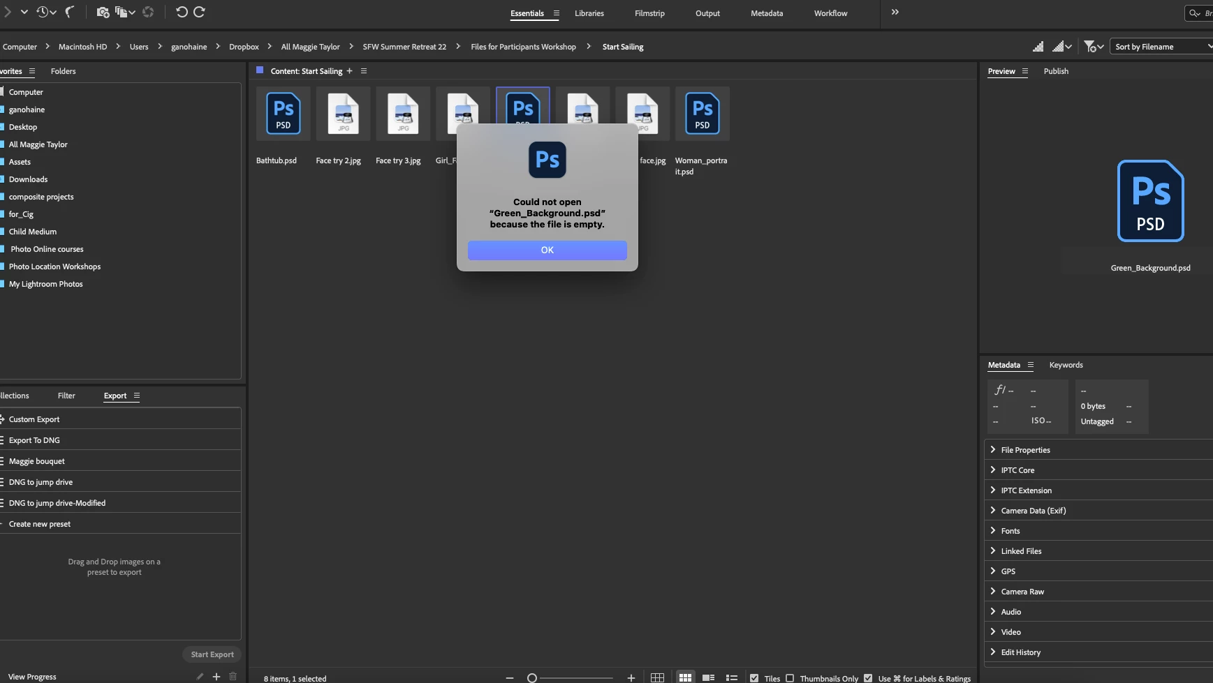 I have a CC membership and recently updated all programs to the 2023 version. Now, when I browse files in Bridge from PS, I cannot doubleclick the files to open. Bridge gives the error message "Could not open X because the file is empty". I can open (mostl psd files but also .jpeg etc.) with the open comannd from PS or by doubleclicking on the file. These are files I have opened this way in the past. Thoughts? Upon one restart, I could do this, but when I had occasion to restart again, I am back to this error.
