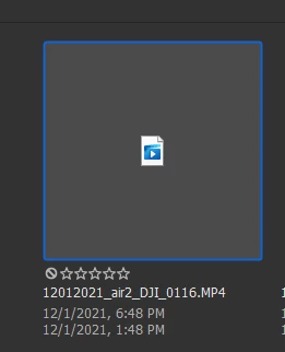 In Adobe Bridge, prior to a certain date, videos taken with my Air Mavic 2s showed thumbnails / previews fine. After that date, it just shows the .mp4 icon.