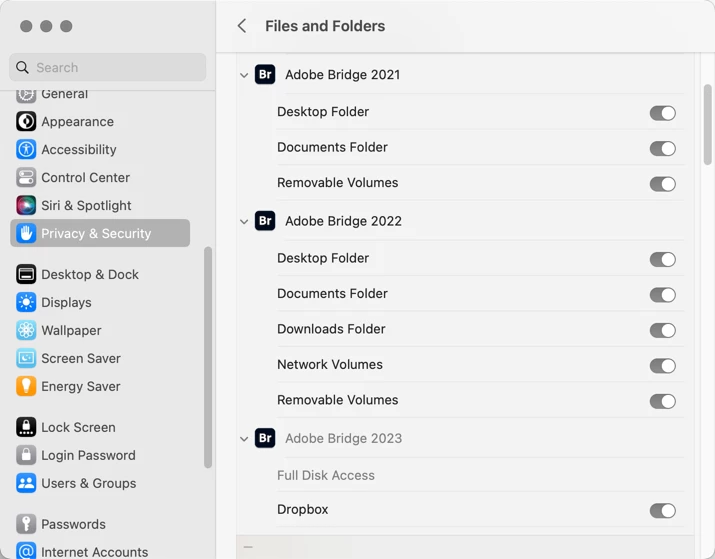 CANNOT ENTER LABELS/RATINGS, COPR COPY FILES, IN BRIDGE FROM EXT. HARDDRIVE ON MY MACBOOK