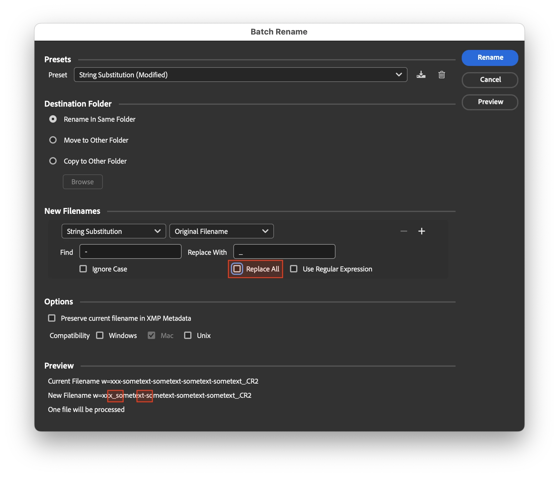 Numbers of x are different. I want to only change the first - to _ like below