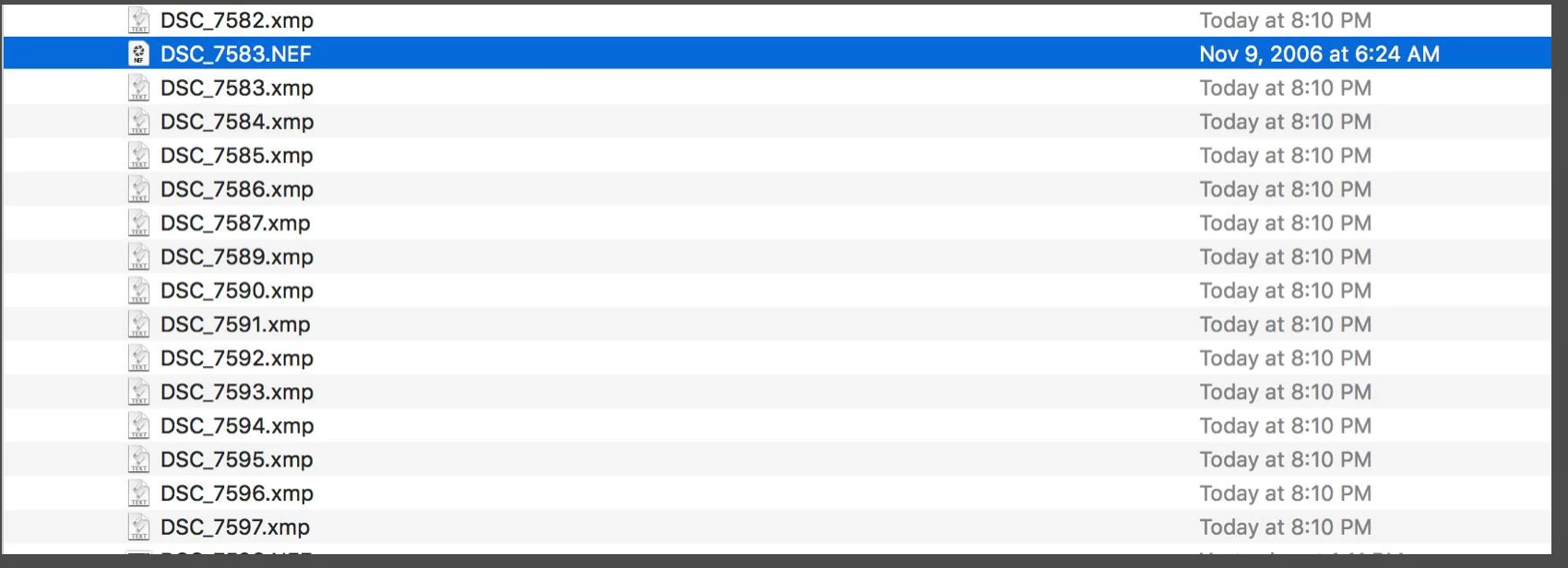 Something happened with my files and I wanted to see if anyone can help. I put my SD card in and opened my images in Bridge. The images opened fine and I was able to color correct and go on to the next ones, but now when I go to open those images I see one .NEF file and there are 20 images missing. It's almost as if they are compressed into this single file that I can't open and says is 1.95 GB but I can't open because it says it is empty. And when I pull up the Card in Finder I can see the .xmp written files but the .NEF photos are gone. I also tried an recovery software that didn't pull them either. I know I didn't delete them, but even if I did they should still be pulled from the recovery software. Is there anyway to open these files? Or are they gone. Screenshot from Bridge and Finder on what I see.
