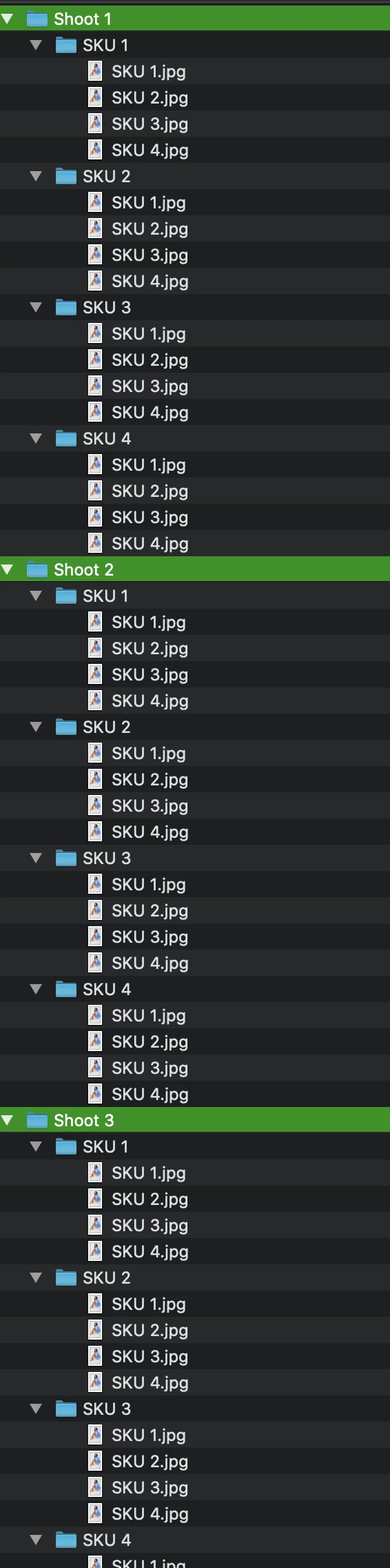 I curently have to drag each shoot folder (full of SKUs) onto bridge to create a contact sheet however I'd like to automate a workflow that allows me to drag all SHOOT FOLDERS on to Bridge and it creates a contact sheet based on the shoot folder name. I've attached an example of what my structure looks like.