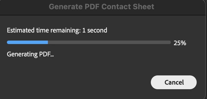 creating a contact sheet in bridge takes too long. After more than an hour, the progress is the same.