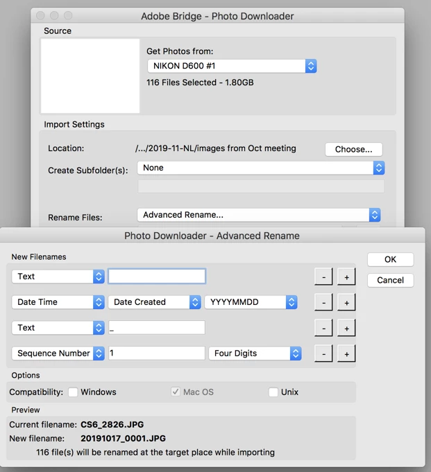 I use Bridge to import camera trap pics because it is many times faster than anything else incl Lightroom. I cannot figure out how to retain the actual time order/sequence of the images when I rename them on import.