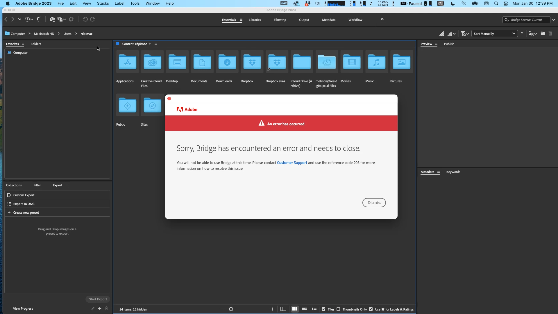 I simply cannot use bridge anymore. I get an error 205 on everything I try