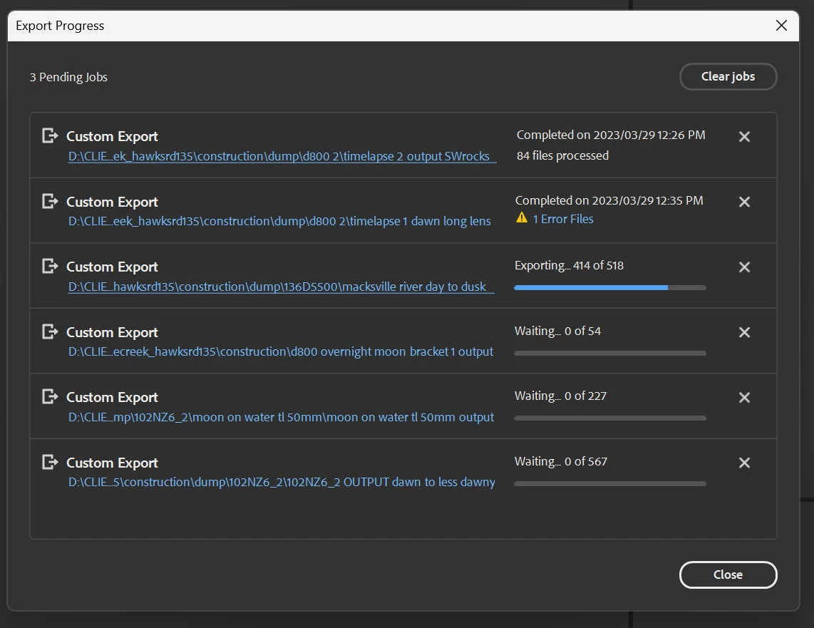 export progress stuck