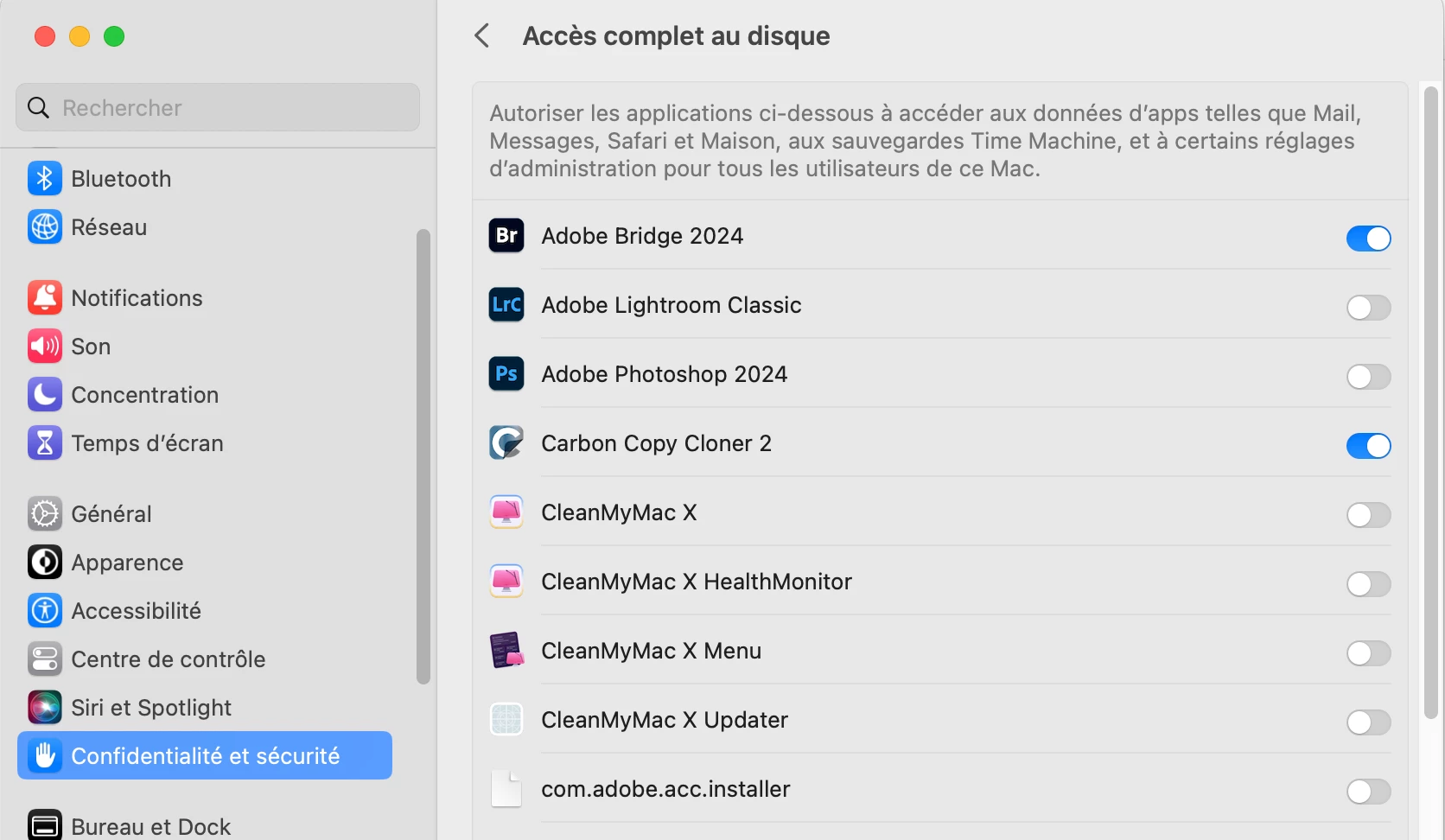 How can I solve the problem of updating to the latest versions of Bridge? Please note that all Apple accessibility settings have been checked and are correctly activated.
