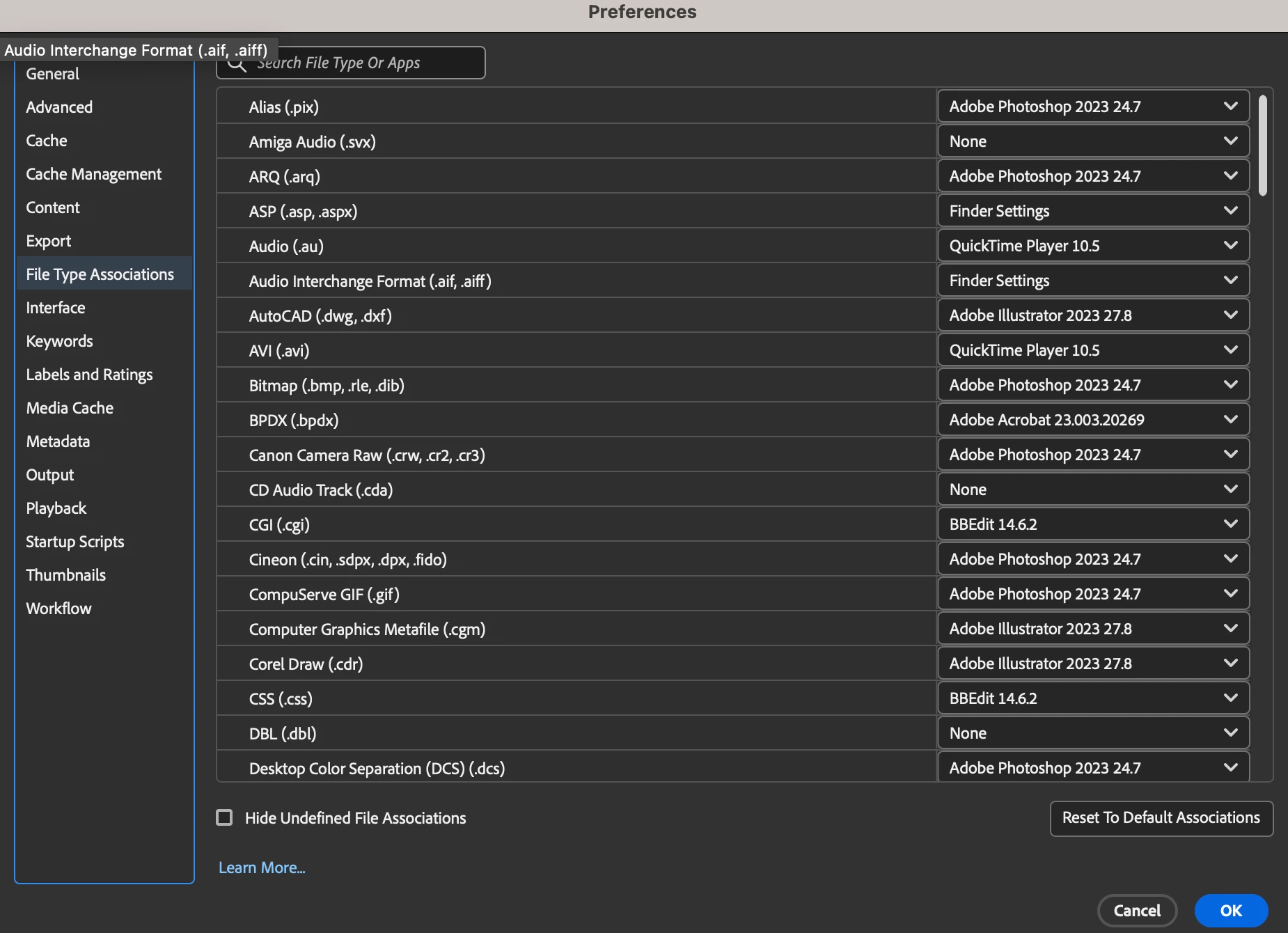 I'm in Adobe Bridge 2023 info below. Apple M1 Ventura 13.4.1