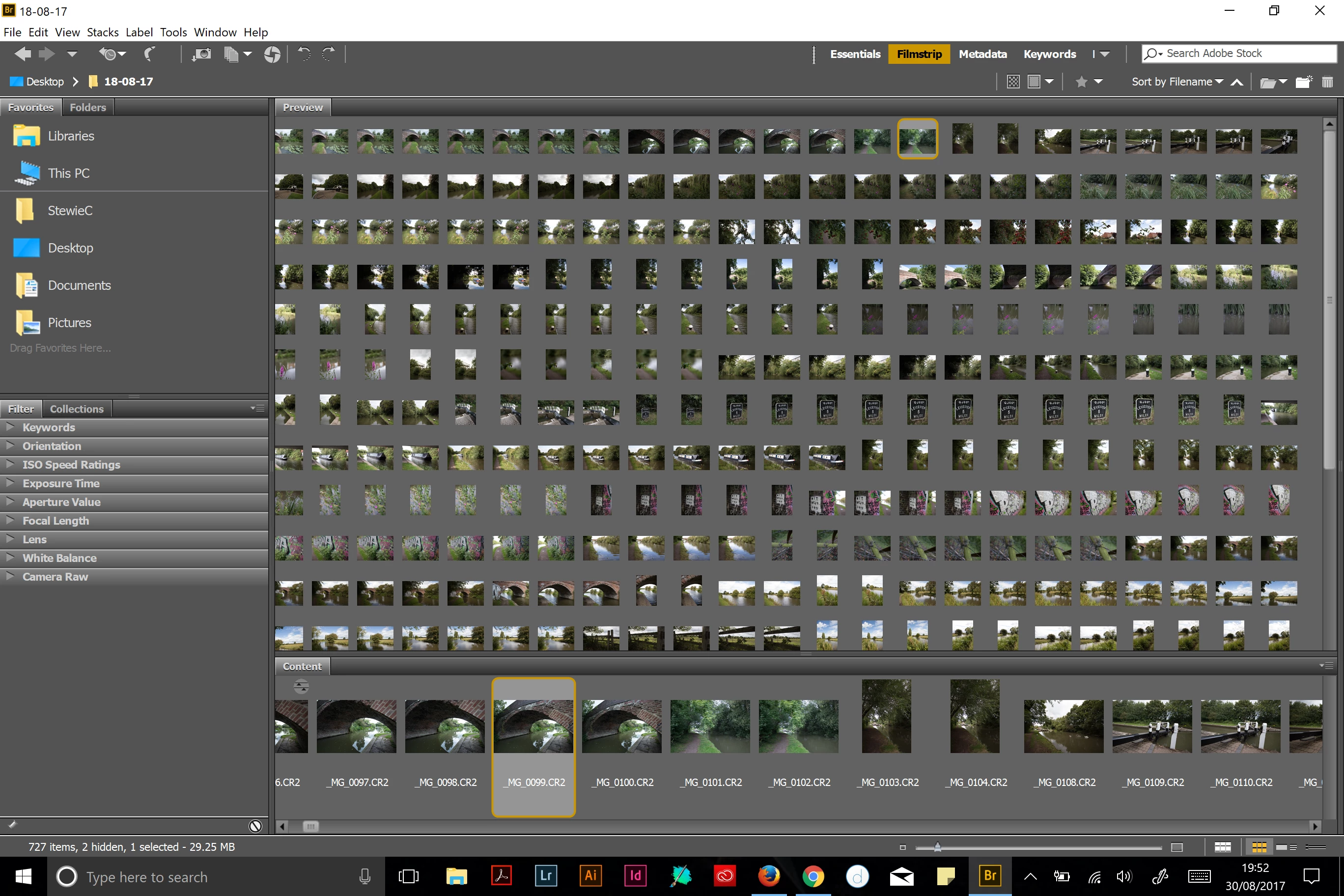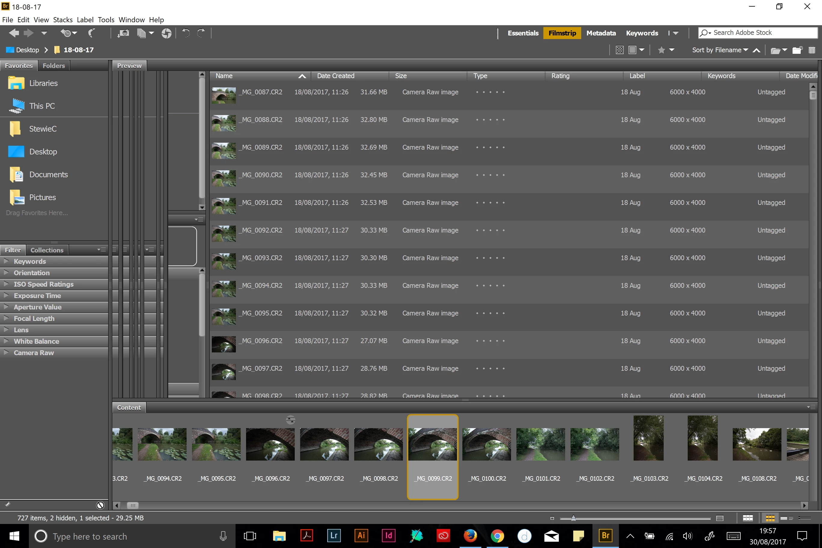 The filmstrip in Bridge is not displaying correctly, sometimes showing everything. When I click on another preview style and then click back I get the below.