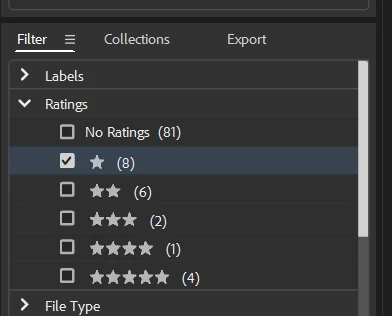 in the filter search menu I can use just "Show 1 star or More Stars", but if I want to see just 1 star and not more stars?
