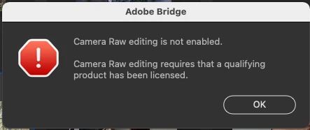 When I try and open CameraRaw from Adobe Bridge 2021 I get the following error:
