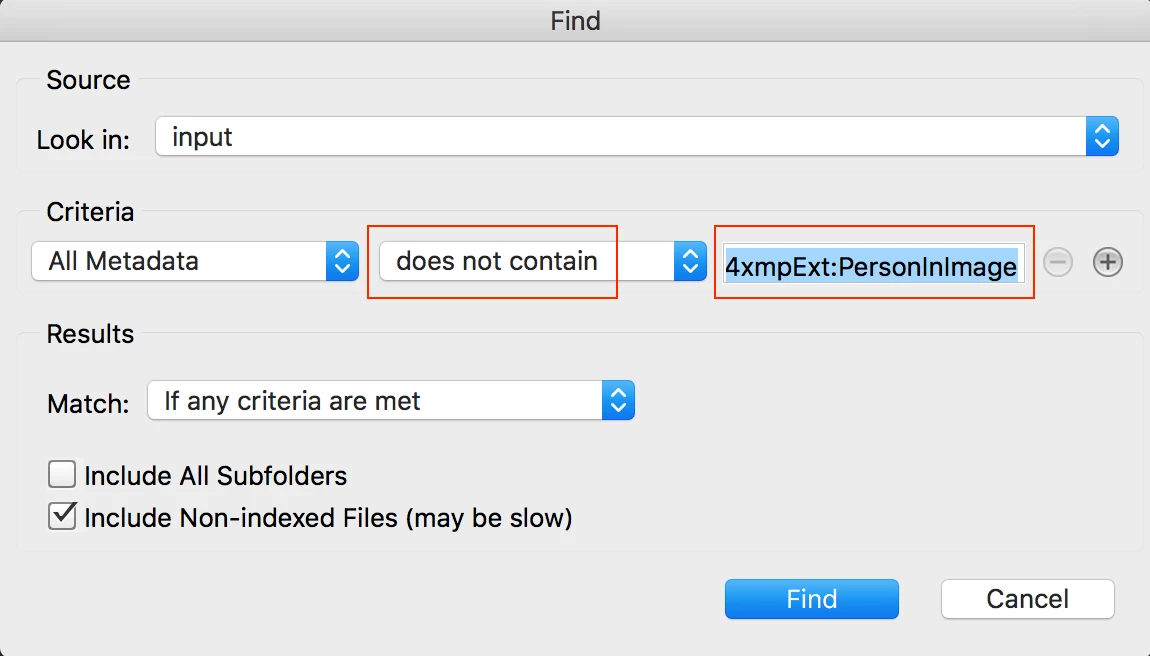 Can I make a search limited to the field Person Shown? E.g. I need to find all pictures of person X. And the opposite, can I find all pictures that has the Person Shown field empty?