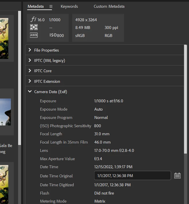 How can I view in Bridge the focal length of the lens I used to take my picture ?