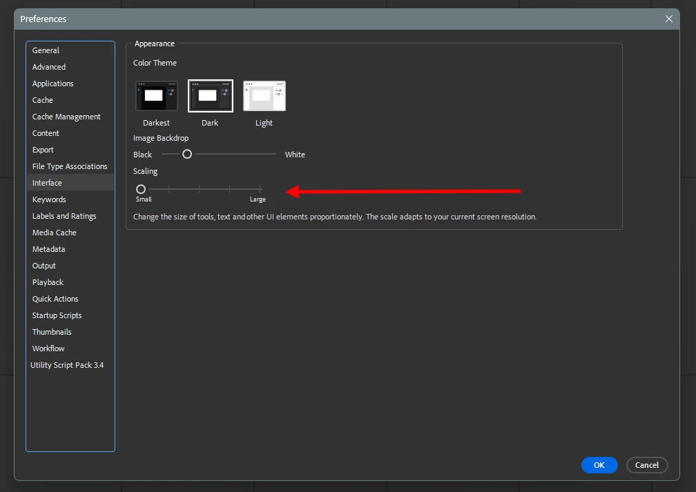 Hi, I’m trying to change the font size in Adobe Bridge, but I can’t find the option. Is there a way to adjust the UI or text size?