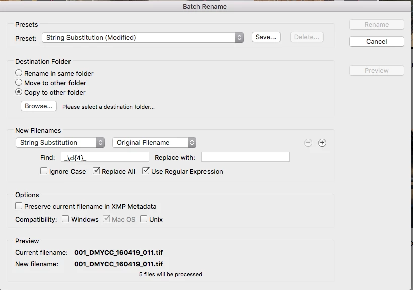 I have a series of images "_####_[layercompName].png". I would like to remove the underscores and numbers. The underscores removal is easy, but how do I remove the numbers (####) when they are different for each filename? I would like the end result to be [layercompName].png