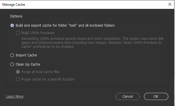 If you do NOT choose “Tools>Build and Export cache for folder ‘xx’”