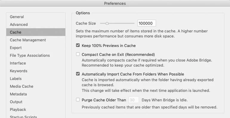 How does Adobe Bridge work (starting caching)?