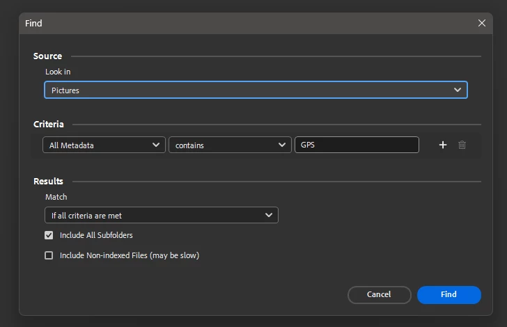 How to find or filter images which contain GPS metadata?