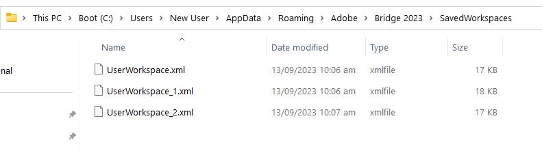 Strange though ... I copied from old machine / Saved Workspaces ... which show the date created, but not the given name ... and !! are XML files.