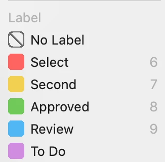 Hello, thanks for the quick response, Whatever I try with or without the command key, mouse or keyboard (wireless or with a cable), it remains the same. I now use the rating on an intel macbook pro and then the ratings are recognized on the mac mini M1. Only the coloured labels from the macbook become white on the mac mini M1... It is already very annoying,