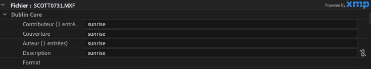 I have a number of video files (mxf) which are being tagged in Premiere Pro by the editing team. They are using the Dublin Core fields in the metadata window in Premiere Pro.