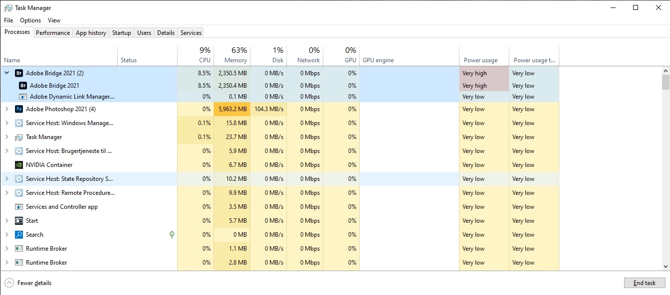 I have no other heavy applications running while working in Adobe (not to my knowledge at least) - just Bridge, ACR and Photoshop. As soon as I return to Bridge from ACR or Photoshop, the buzy work begins.