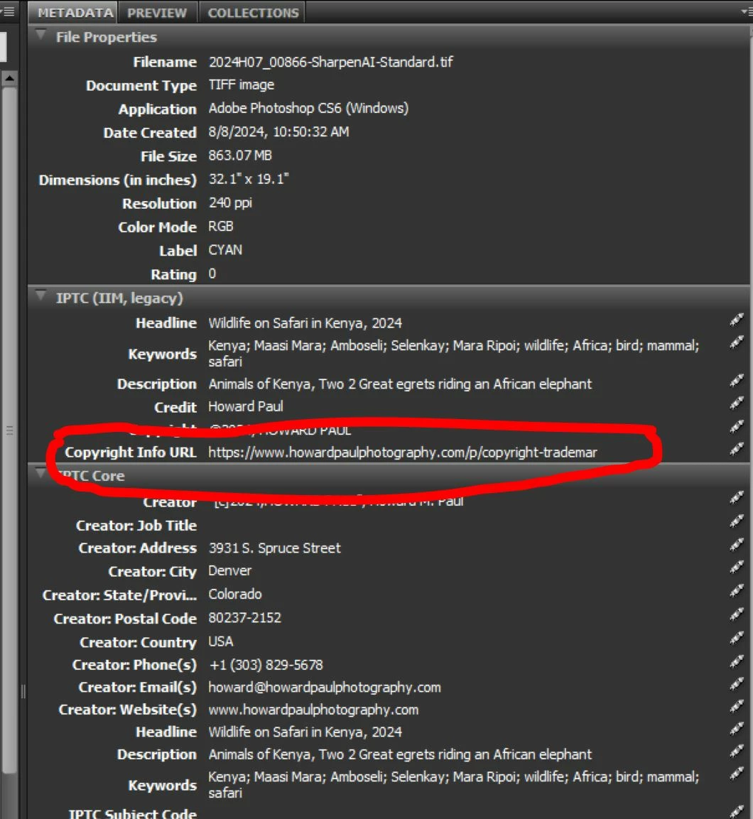 Is Photoshop Bridge metadata template missing "copywrite info url" field